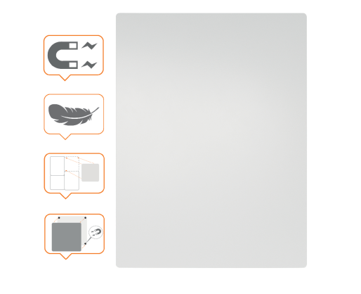 Naujoviška magnetinė tvirtinimo sistema leidžia lengvai lentą nuimti ir ir naudoti ant lygaus paviršiaus ir bet kada vėl pritvirtinti prie sienos - tai suteikia maksimalų lankstumą.