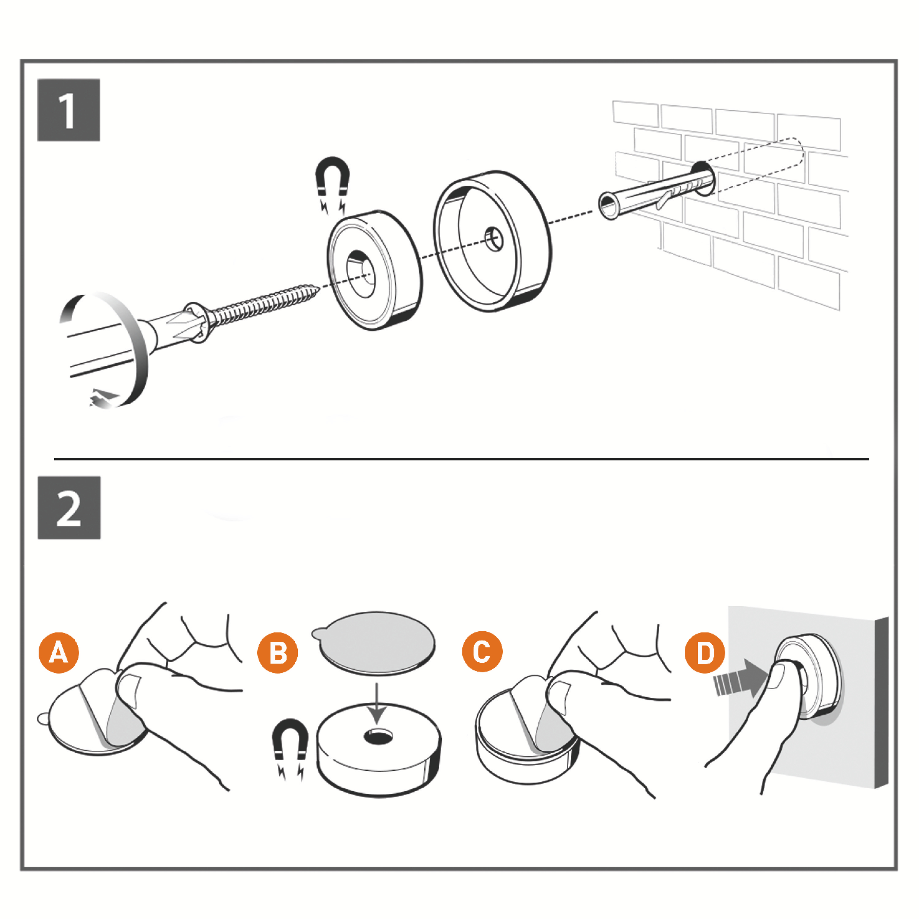 Magnetinius laikiklius prie sienos galima tvirtinti varžtais arba lipniomis pagalvėlėmis ant plokščių paviršių.