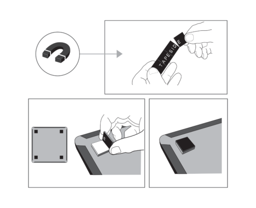 Lenta gali būti tvirtinama prie sienos naudojant lipnius padelius arba prie metalinių paviršių (pvz., šaldytuvo) magnetais.