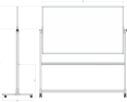 Dvipusė magnetinė rašomoji lenta; lakuotas paviršius; aliuminis rėmas; lenta fiksuojasi norimoje padėtyje; ratukai su stabdžiais; pakuotėje yra plastikiniai kabliukai popieriui ir laikiklis rašikliams.