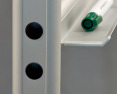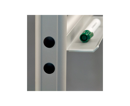 pakuotėje yra plastikiniai kabliukai popieriui ir lentynėlė rašikliams.