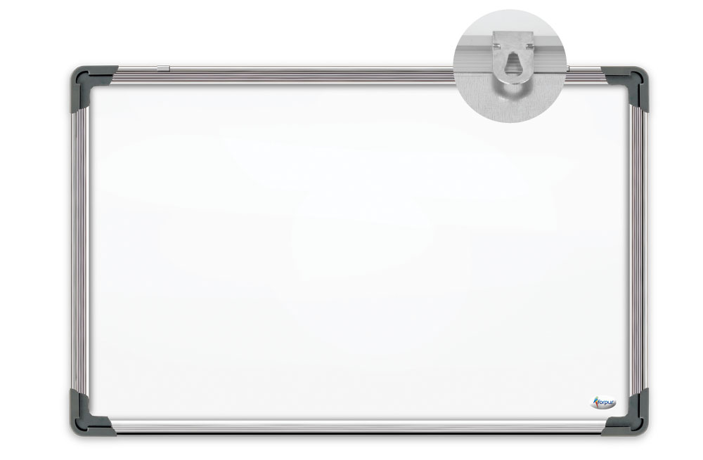 Magnetinė lenta aliuminio rėmu Forpus, 45x60cm. Balta magnetinė rašomoji lenta, aliuminio remas, lentynėlė žymekliams, kabinama ant dviejų kablių. Skirta kabinti horizontaliai. FO70105