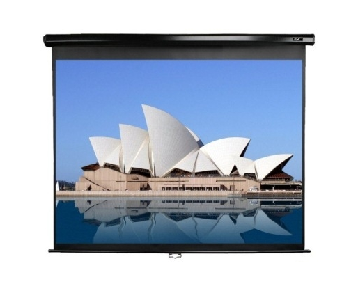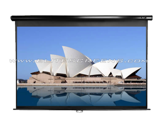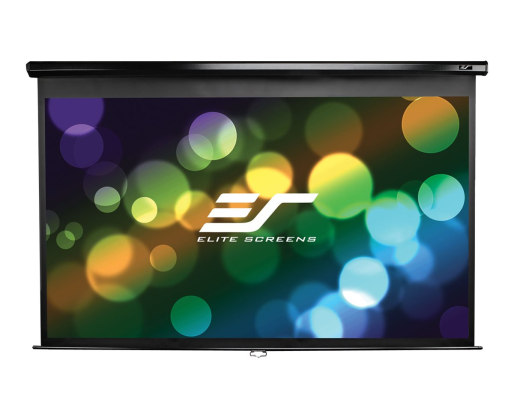 Kitos savybės The Elite Manual Pull-down Series front projection screen is a cost effective retractable screen with a dual case design for wall or ceiling installation.Elite Screens’ MaxWhite Screen Material is durable for daily use and easy to clean. It has a wide viewing angle with 1.1 Gain and is suitable for most applications including Commercial /Educational and Residential. MaxWhite Screen material has a black backing to eliminate light penetration for superior color reproduction. Its Texture pattern eliminates Moiré or Hot Spotting which is a common phenomenon with poorly made projection screen material or wall projections.