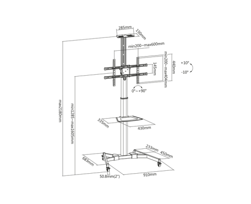 | Gaminio pavadinimas | TV-Cart for screens up to 70", max. 50kg wheelbase, VESA max. 600x400 |