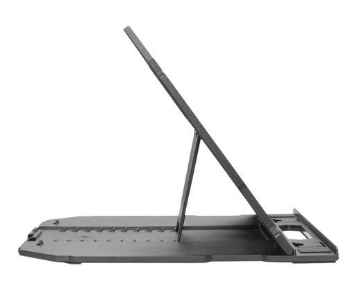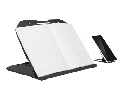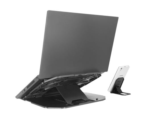 | Kitos savybės | Ergonomic design with 10 levels of adjustment from 0 to 54 degrees; Additional cellphone stand for multitasking; Durable, lightweight construction with non-slip rubber surface pads for steady typing; Supported Laptop Weight - 5 kg |