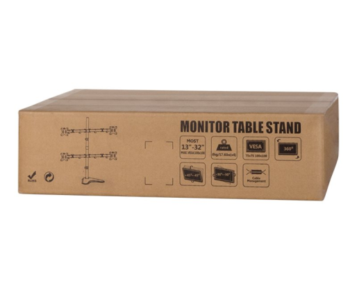 | Kitos savybės | Suitable for 13–32" LCD, LED, PC and TV monitors. Maximum arm length: Each 460 mm For 4 monitors |