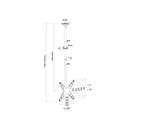 | Gaminio pavadinimas | FPMA-C340BLACK Monitor/TV mount ceiling screen |