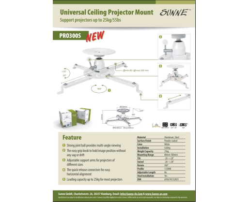- Sunne | Projector Ceiling mount | Turn, Tilt | White 160602
