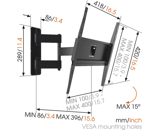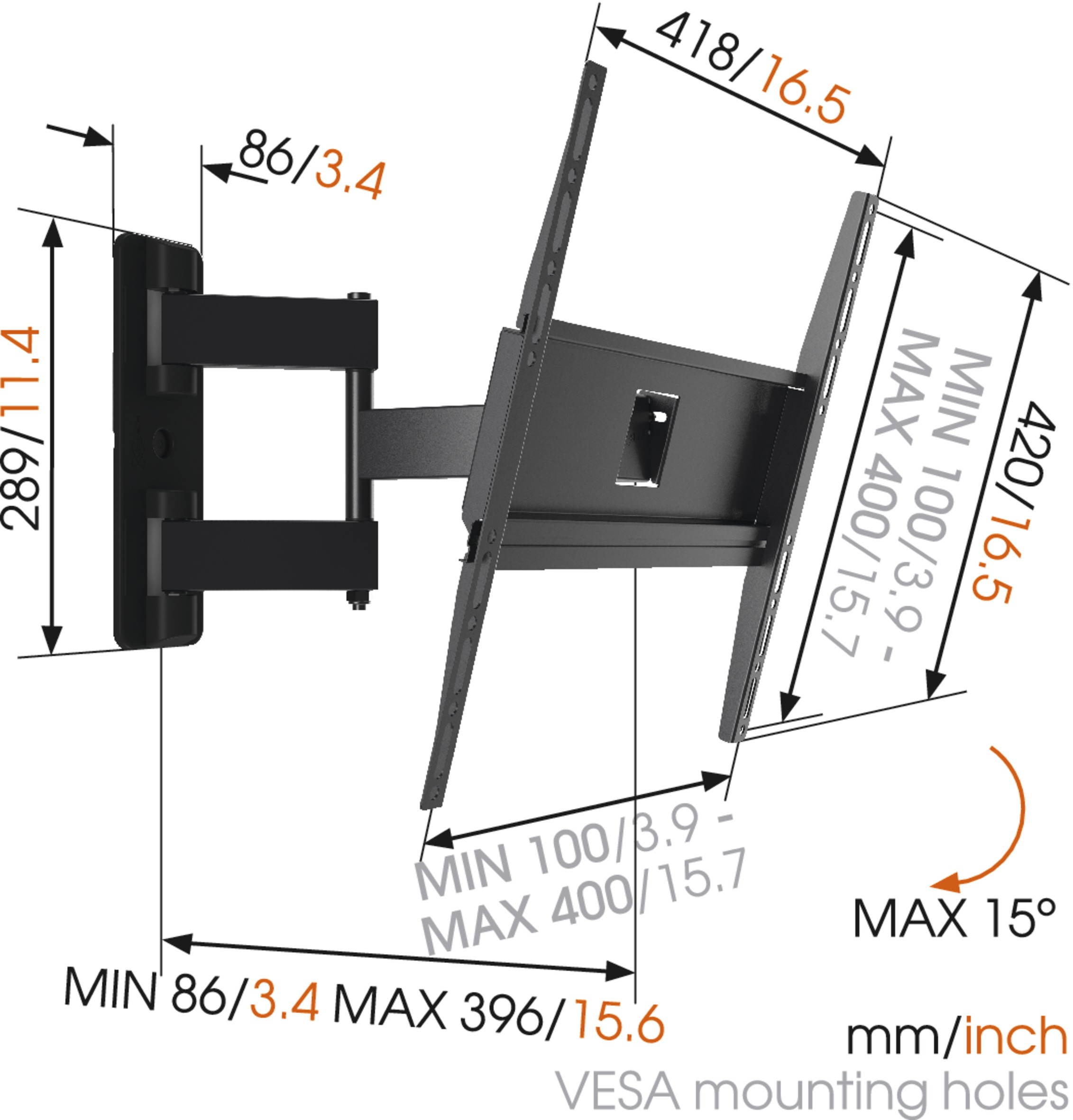 - Vogels | Wall mount | MA3040-A1 | Full Motion | 32-65 " | Maximum weight (capacity) 25 ...