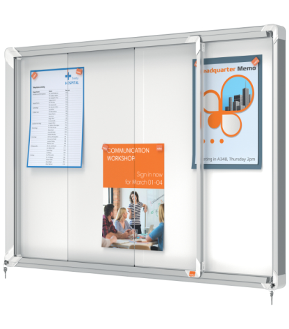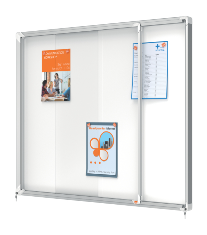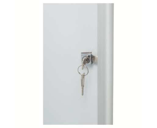 Itin plona, ypač kompaktiška magnetinė informacinė lenta su rakinamomis skaidraus akrilo durimis ir saugiu užraktu su 2 rakteliais, skirta naudoti patalpose.
