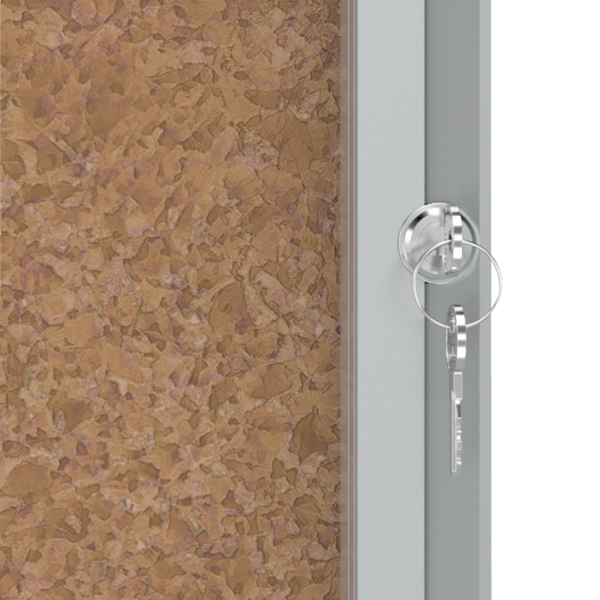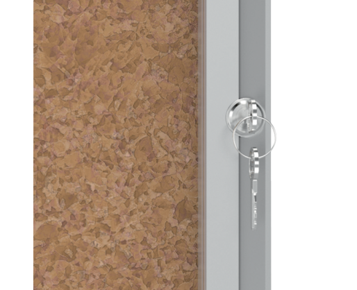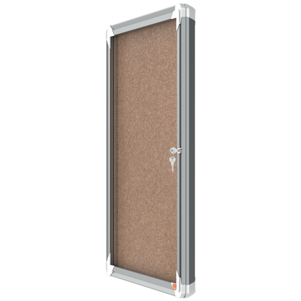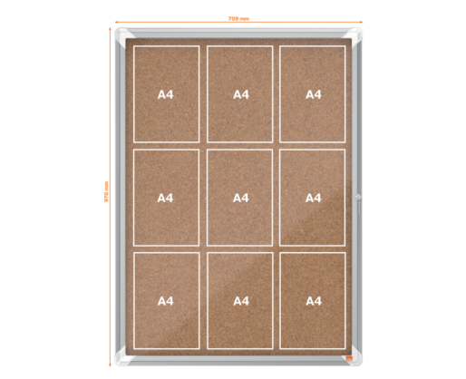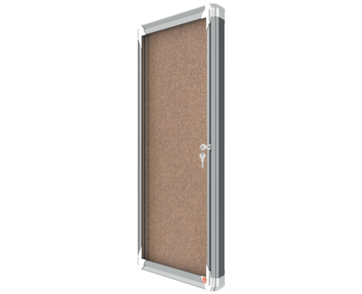 Užrakinama kamštinė skelbimų lenta NOBO su kokybiška kamščio danga, stilingo aliuminio rėmu, skaidriomis stiklo durelėmis. Idealiai tinka dokumentams koridoriuose. Komplekte yra 1 raktas ir sienų tvirtinimo elementai. A4x9 dydis. 709x970 mm. Svoris 10,50kg