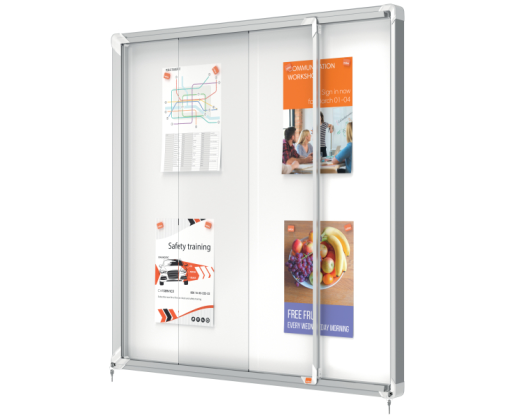 Užrakinama magnetinė skelbimų lenta NOBO Premium Plus su stumdomomis durimis.