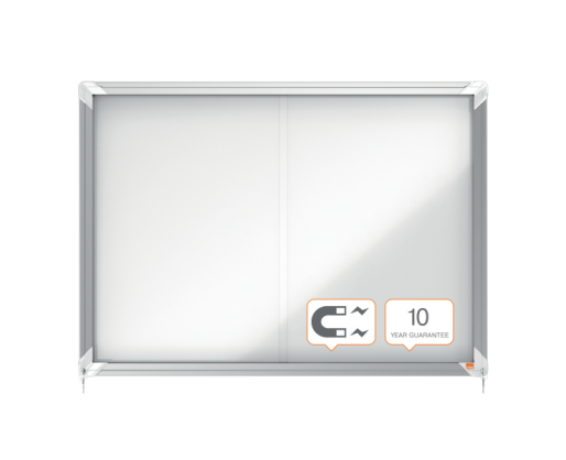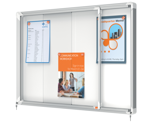 Užrakinama magnetinė skelbimų lenta NOBO Premium Plus su stumdomomis durimis.