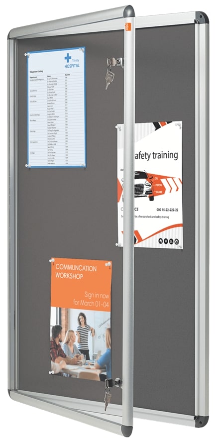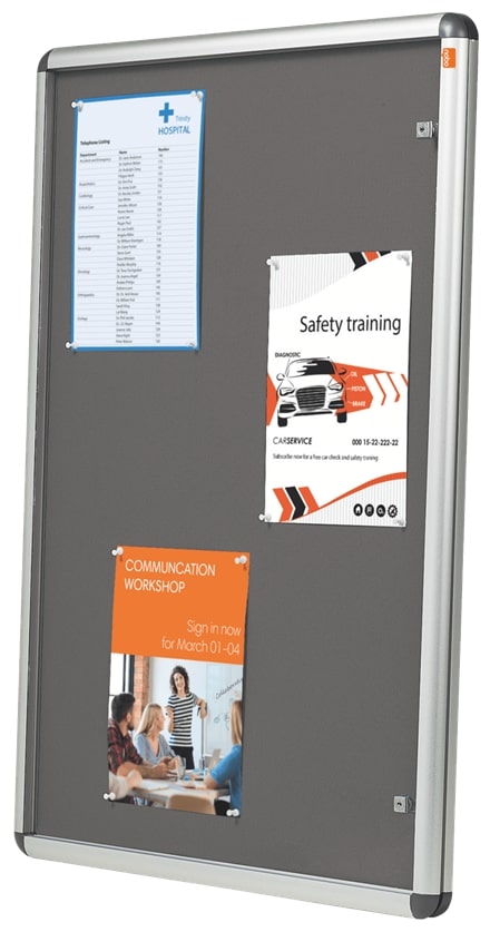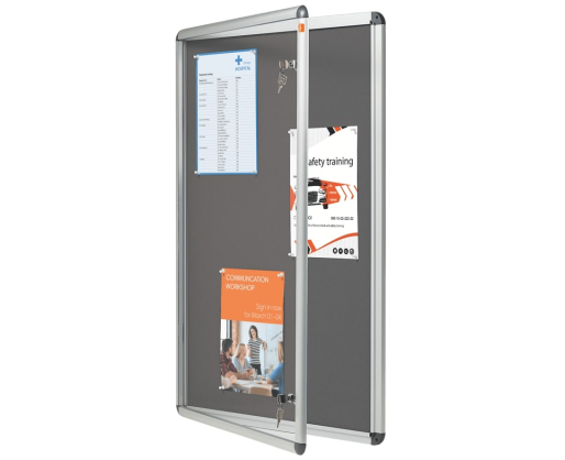 Užrakinama veltinio skelbimų lenta NOBO kartono plokštės paviršiumi ir tvirtomis, bet lengvomis akrilo durelėmis. Idealiai tinka dokumentams koridoriuose, nes korpuso apačioje esantys vyriai leidžia durims atsidaryti žemyn. Komplekte yra 2 raktai ir sienų tvirtinimo elementai. A1 dydis. 745x1025mm. Svoris 4,65kg