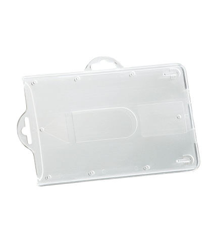 Matmenys: 54 x 85 mm. Galima naudoti vertikaliai arba horizontaliai. Pagamintas iš aukštos kokybės polistireno. Be laikiklio. Galima naudoti su grandinėle, juostele ar specialiu laikikliu, kurio virvutė automatiškai susivynioja. Skaidrus.