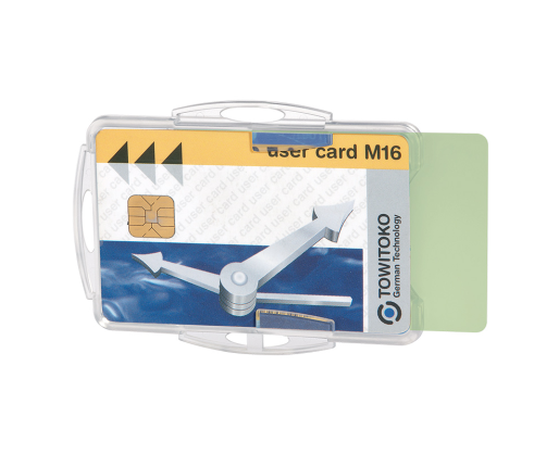 Matmenys: 54 x 85 mm. Galima naudoti vertikaliai arba horizontaliai. Galima įdėti 2 korteles. Pagamintas iš aukštos kokybės polistireno. Be laikiklio. Galima naudoti su grandinėle, juostele ar specialiu laikikliu, kurio virvutė automatiškai susivynioja (150-00738, 150-00745). Skaidrus. Dėžutėje 10 vnt.Prekės parametrai