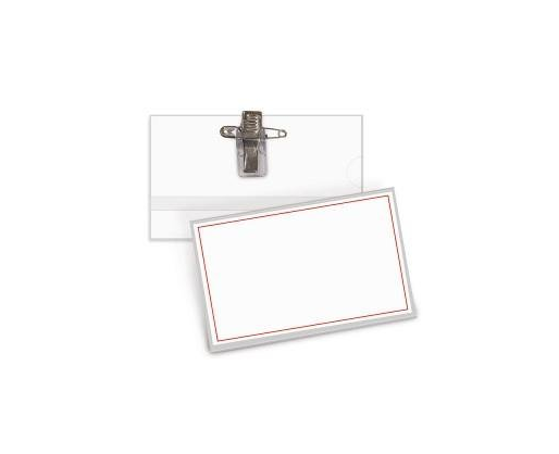 Segama vardinė kortelė, 54x90mm. Pagaminta iš skaidraus PVC plastiko, pritvirtinti galima segtuku ar žiogeliu, popierinis baltas lapelis užrašui. FO70701
