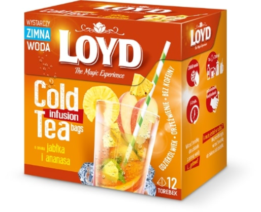 - Arbata LOYD Cold Infusion, obuolių ir ananasų skonio, 12 x 2,5 g