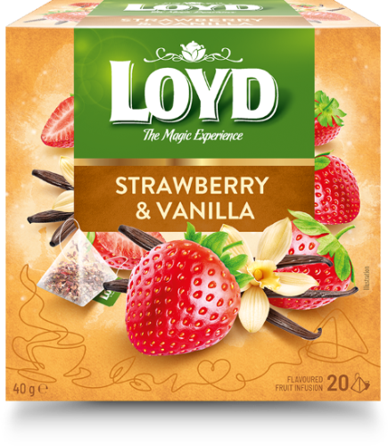 - Vaisinė arbata LOYD, braškių ir vanilės skonio, 20 x 2g