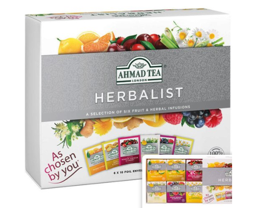 - Vaisinės ir žolelių arbatos rinkinys AHMAD HERBALIST, 60 arbatos pakelių folijos vokeli...