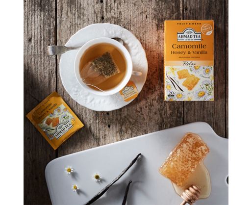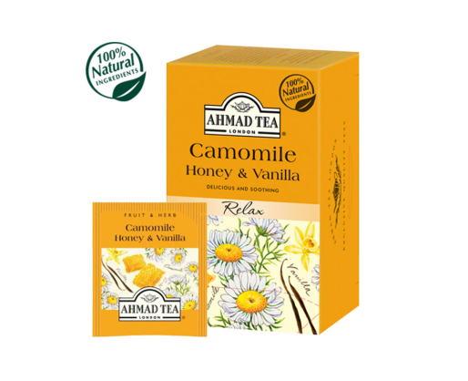 - Vaisių ir žolelių arbata AHMAD Camomile Honey & Vanilla, 20 arbatos pakelių x 2 g