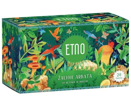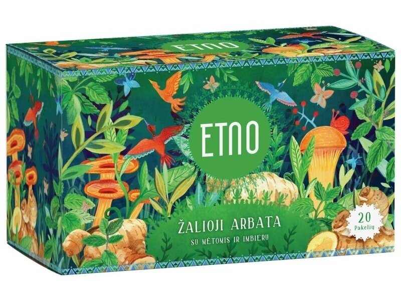 - ETNO Žalioji arbata su mėtomis ir imbieru 30 g (1,5 g x 20 vnt.)