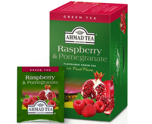 - Žalioji arbata AHMAD GREEN Raspberry & Pomegranate, 20 vokelių su siūlu