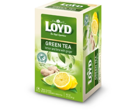 - Žalioji arbata LOYD, citrinų-laimų ir imbiero skonio, 20 x 1.7g