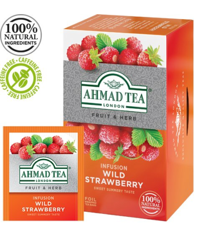 AHMAD TEA Rosehip & Cherry Natūrali arbata. Erškėtrožių ir vyšnių skonio. Kiekvienas arbatos pakelis supakuotas folija dengtame vokelyje. Po 2 g. Dėžutėje 20 arbatos pakelių.Prekės parametrai