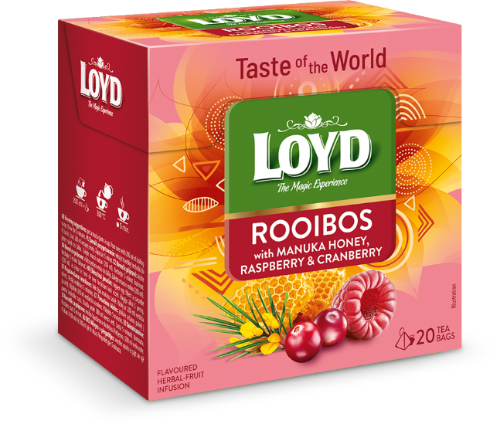 - Žolelių ir vaisių raudonoji arbata LOYD, medaus, aviečių, spanguolių skonio, 20 x 1.7g
