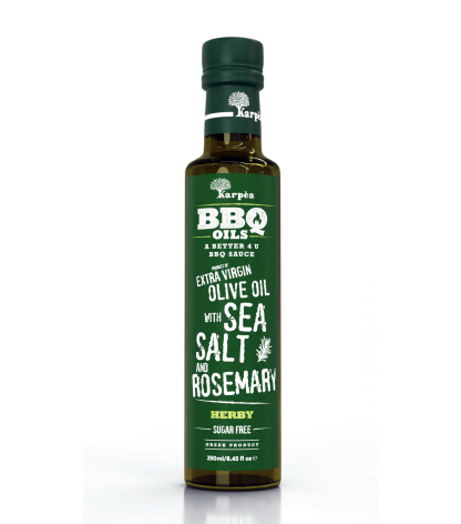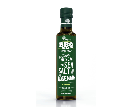 - Alyvuogių aliejus KARPEA, BBQ, extra virgin, su jūros druska, rozmarinais, 250 ml