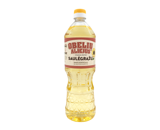 - Saulėgrąžų aliejus OBELIŲ, rafinuotas, 0,9l