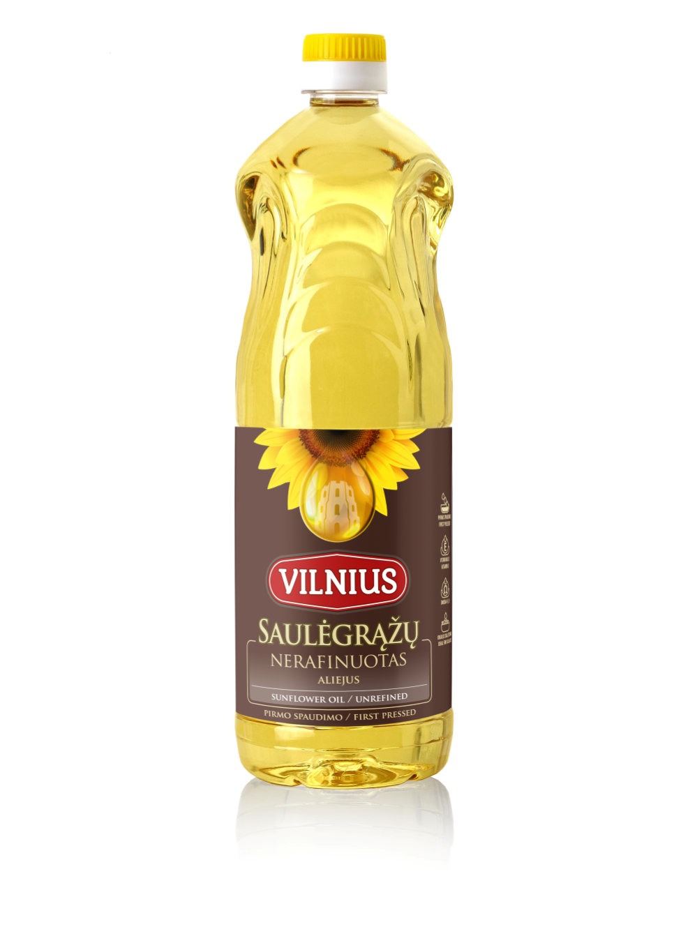 - Saulėgražų aliejus VILNIUS, nerafinuotas, 1 l