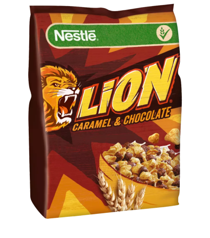 - Pusryčių dribsniai NESTLE, Lion, su šokoladu ir karamele, 450g