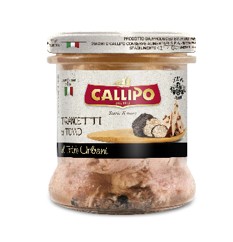 - Gelsvauodegio tuno gabaliukai, CALLIPO, su trumais alyvuogių aliejuje 170g