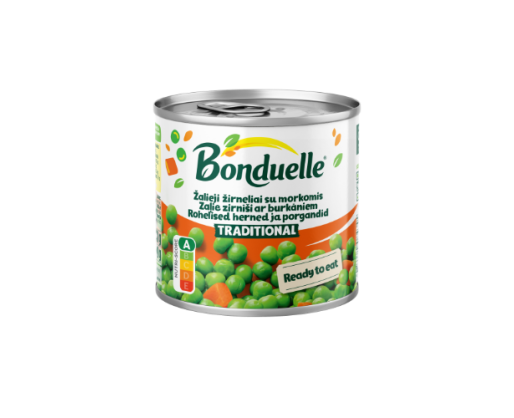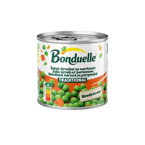 - Žirneliai su morkomis kubeliais BONDUELLE, 400 g / 240 g