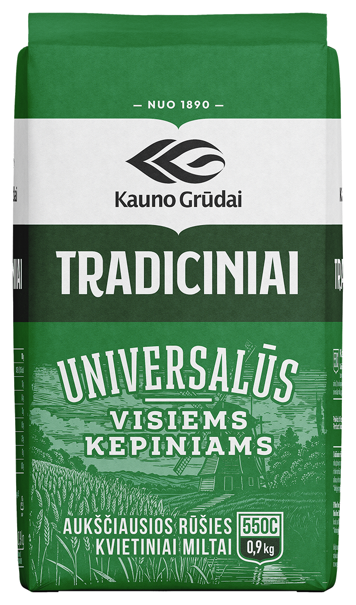 - Tradiciniai kvietiniai miltai, KAUNO GRŪDAI, 550C, 0,9 kg