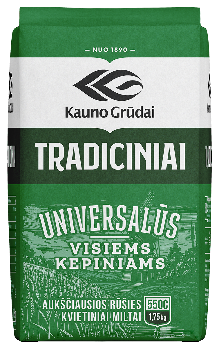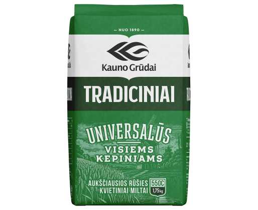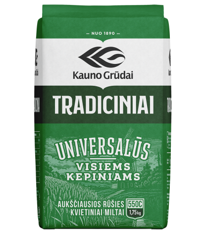 - Tradiciniai kvietiniai miltai, KAUNO GRŪDAI 550C, 1,75 kg