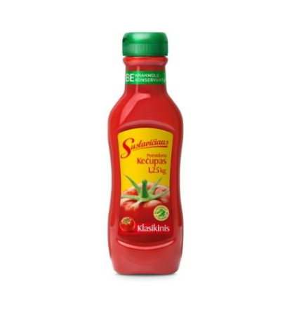 Sudedamosios dalys:cukrus (40%), vanduo, pomidorų pasta, actas, modifikuotas kukurūzų krakmolas, druska, sudegintas cukraus sirupas (gliukozės sirupas, cukrus), obuolių sulčių koncentratas, prieskonių mišinys, garstyčios (vanduo, garstyčių sėklos, spiritinis actas, druska, prieskoniai), dūmų kvapiosios medžiagos.Maistinė vertė 100 g: Energinė vertė 841 kJ/ 198 kcal Riebalai 0 g Sočiosios riebalų rūgštys 0 g Angliavandeniai 48 g iš kurių cukrų 44 g Baltymai 0,8 g Druska 2,5 g