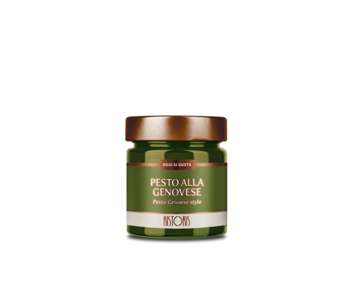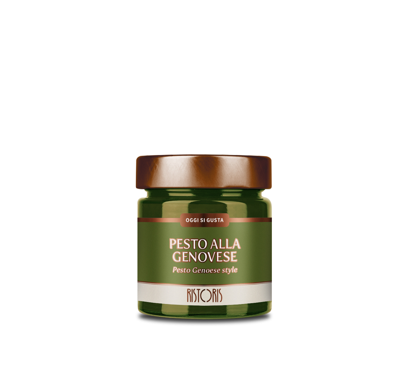 Sudedamosios dalys - Bazilikai (35%), saulėgrąžų aliejus, ypač tyras alyvuogių aliejus, anakardžių riešutai (6%), vanduo, tarkuotų sūrių mišinys [pienas, druska, raugas, konservantas: lizocimas (kiaušinio baltymo baltymas)], Grana Padano sūris [pienas, druska, raugas (yra lizocimo iš kiaušinio baltymo)], bulvių krakmolas, cukrus, druska, česnakas, pušies riešutai, rūgštingumą reguliuojanti medžiaga: pieno rūgštis, aromatinės medžiagos.