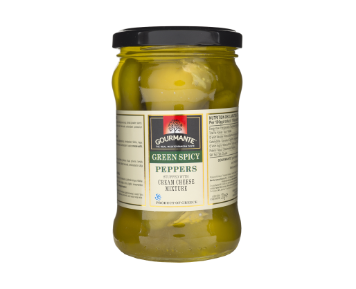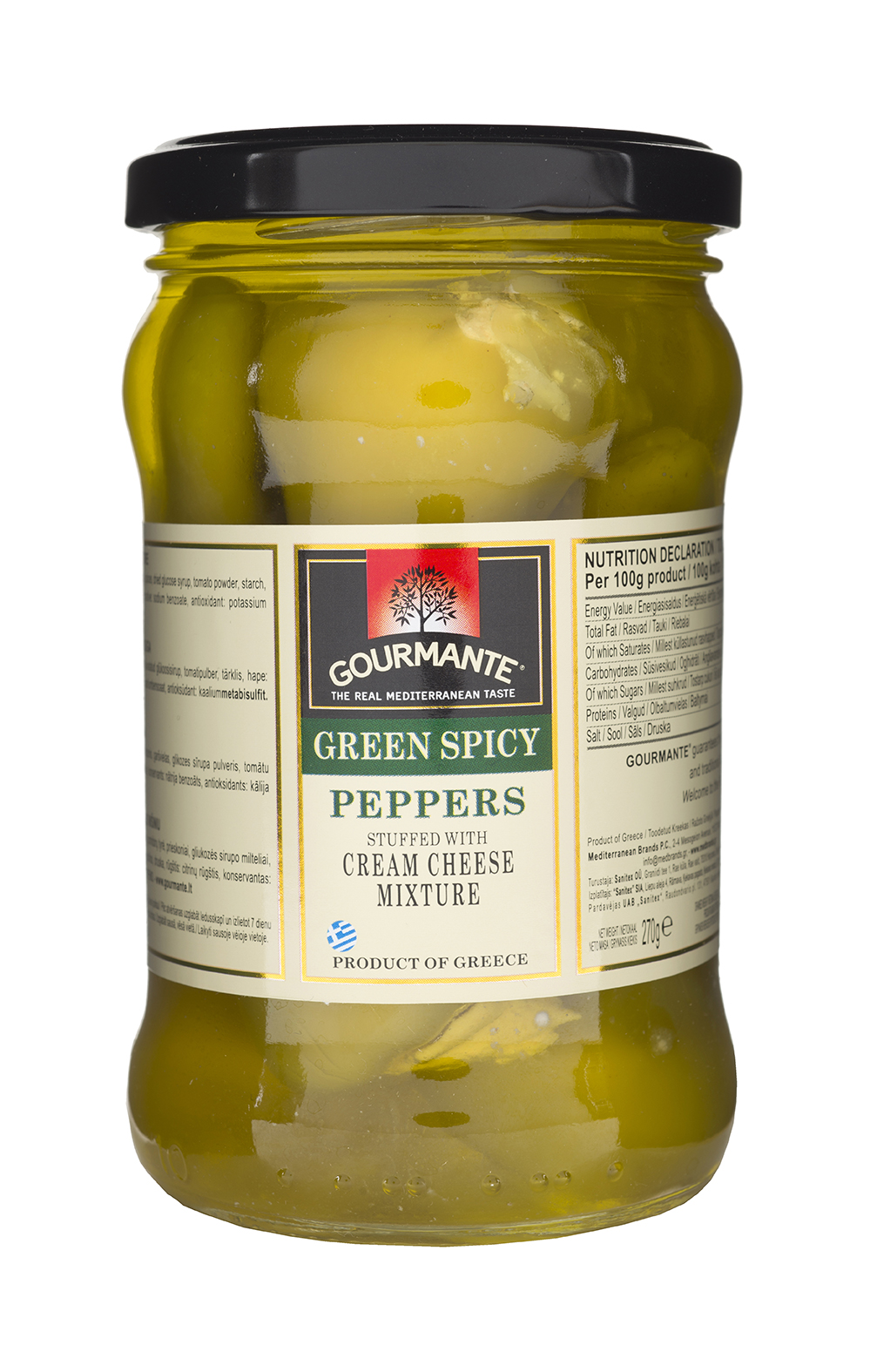 - Žalieji, aštrūs pipirai GOURMANTE, įdaryti grietinėlės ir sūrio mišiniu, 270g