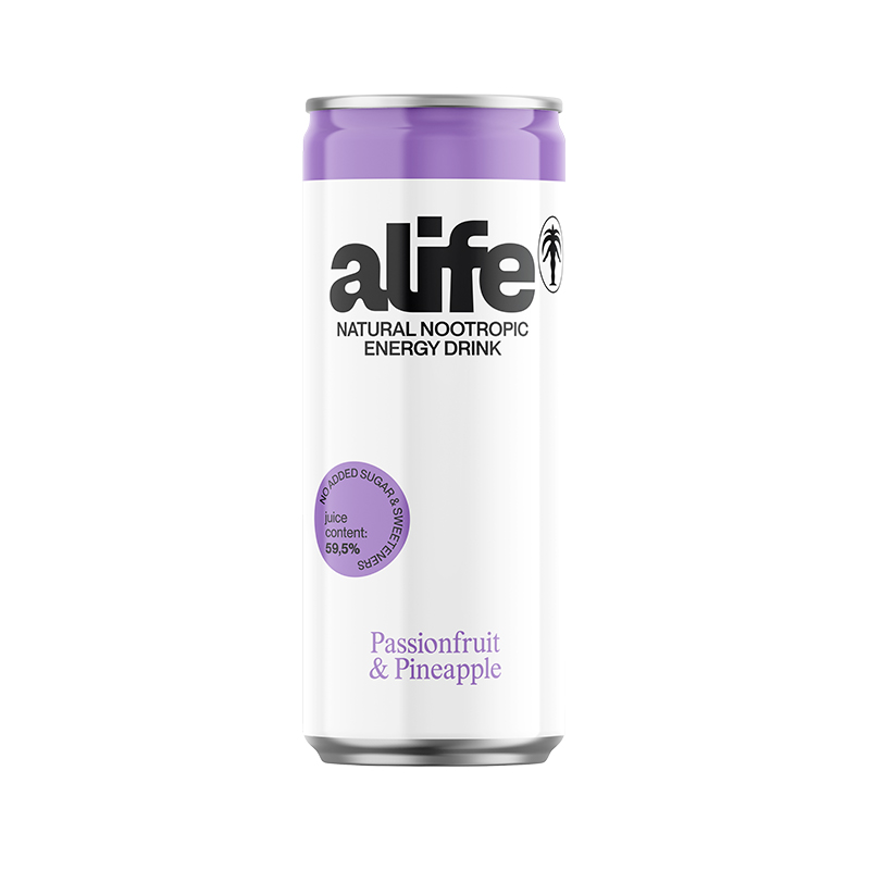 Pasiflorų, ananasų skonio gazuotas natūralus energetinis gėrimas, ALIFE, 0,33 l (skardinėje)