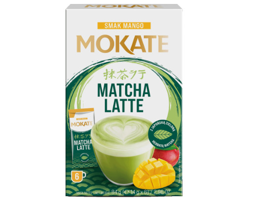 - Žaliosios arbatos gėrimas MOKATE latte matcha ir mango skonio, 6 x 14g