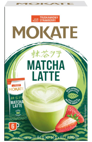 - Žaliosios arbatos gėrimas MOKATE Matcha latte su braškėmis, 6 x 14g