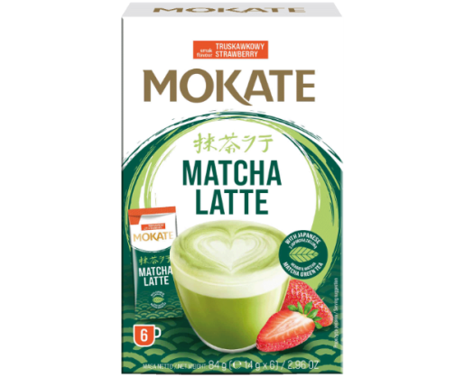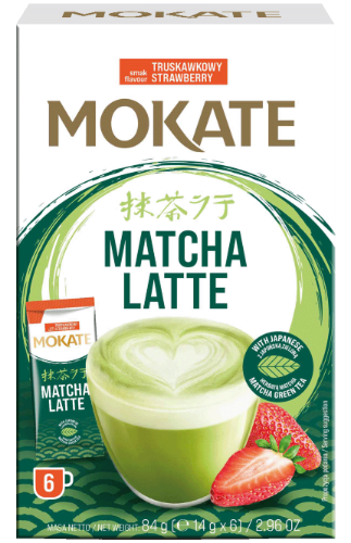 - Žaliosios arbatos gėrimas MOKATE Matcha latte su braškėmis, 6 x 14g