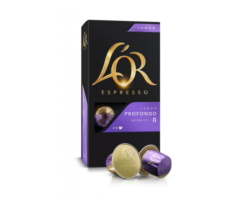 • Kavos kapsulės L’OR PROFONDO LUNGO – sukurtos naudoti „Nespresso®“* kavos aparatams. Ryškaus ir intensyvaus, skrudintų migdolų ir saldymedžio aromato kava su crema putos sluoksniu.• Intensyvumo lygis - 8