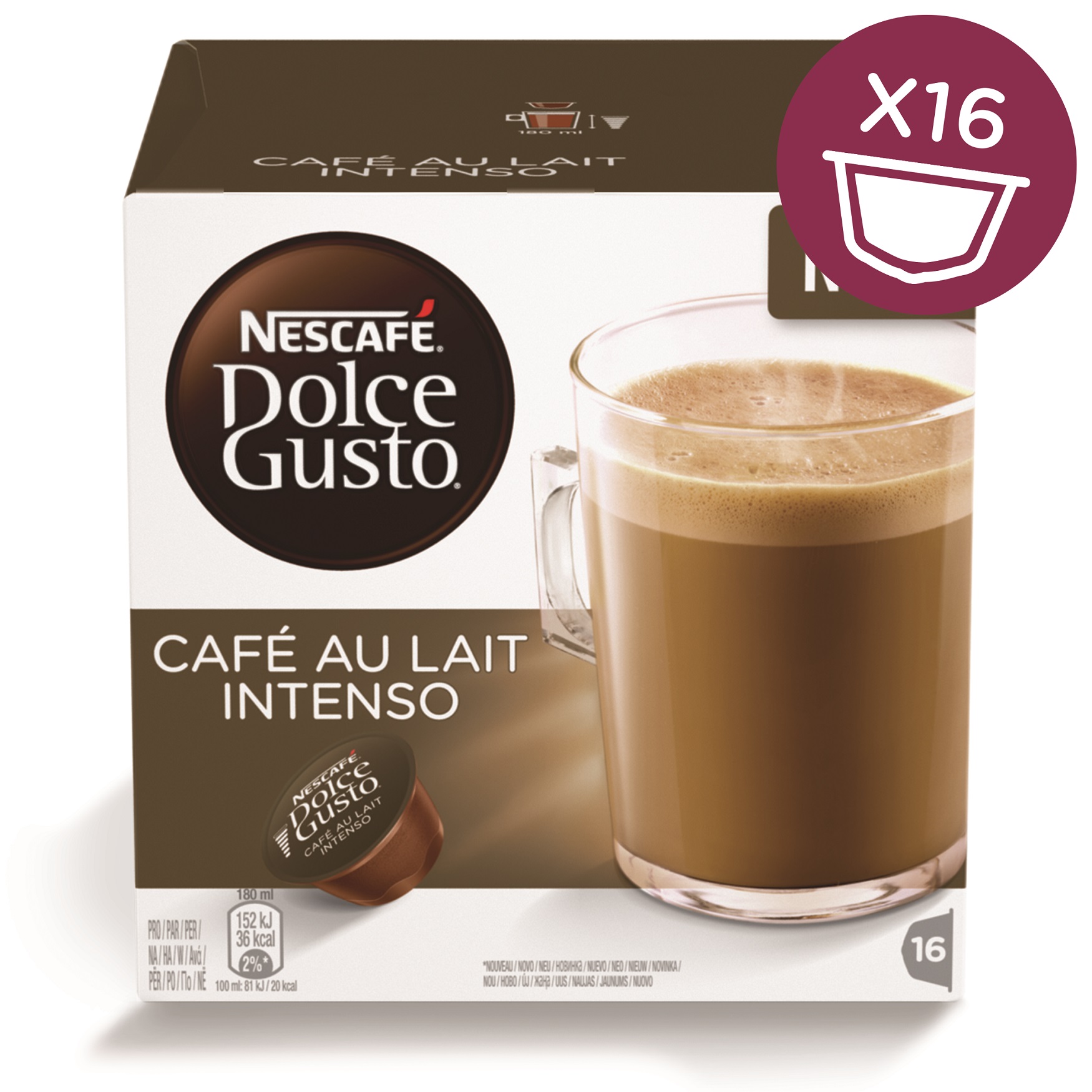NESCAFÉ® Dolce Gusto® Café au Lait Intenso, juoda kava ir švelnus pienas, tai kavos pertraukėlė vienoje kapsulėje.