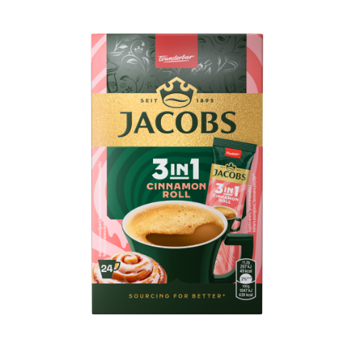 - Tirpiosios kavos gėrimas JACOBS 3in1cinnamon roll, 24x11,2g dėžė