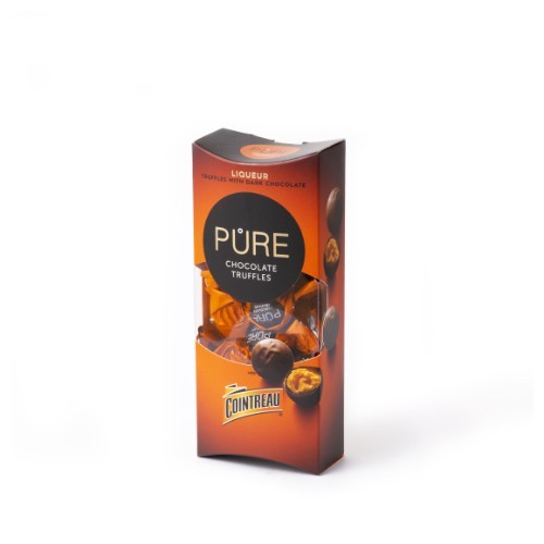 - Juodojo šokolado triufeliai PURE su kreminiu apelsinų likerio „COINTREAU” įdaru, 108g