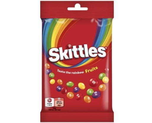 - Kramtomieji saldainiai SKITTLES Fruit Pouch vaisių skonio traškiame cukraus glajuje, 95g